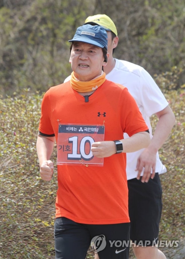 (진안=연합뉴스) 임채두 기자 = 국민의당 안철수 대표가 7일 오전 전북 진안군 795번 지방도를 달리고 있다. 안 대표는 '국난극복', '지역감정 해소와 통합', '정부 개혁과 약속의 정치' 등을 주제로 이달 1일 여수에서 출발해 수도권까지 하루 평균 30㎞가량 달리기로 이동한다. 2020.4.7